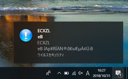 ウイルスセキュリティ で文字化けした通知 Ecxzl が表示される ウイルセキュリティ ソースネクスト