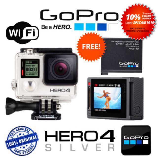 Gopro Hero 4 Silver Original 4k Full Hd Video Waterproof 40m Refurbished Display Unit Shopee Malaysia