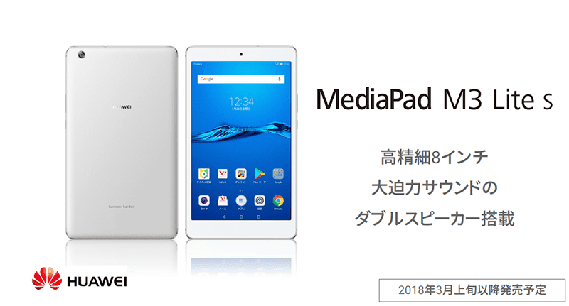 ソフトバンク Softbank向け8インチwuxga液晶搭載のandroidタブレット Mediapad M3 Lite S を発表 低価格ながらメタルボディー採用のコスパ高モデルで2018年1月下旬発売 S Max