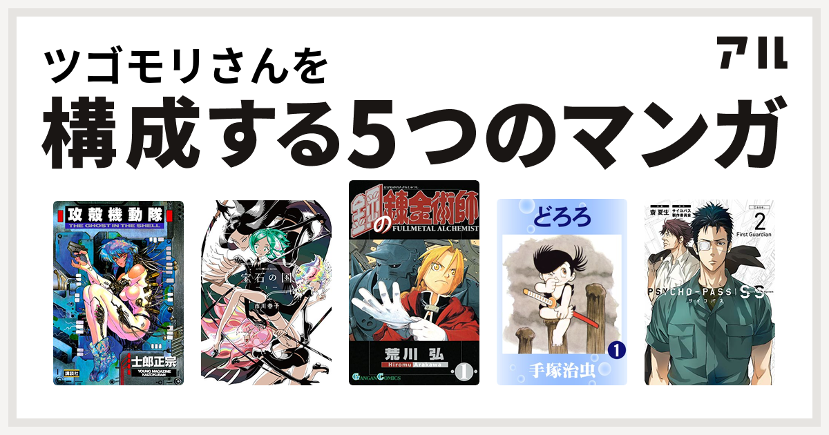 ツゴモリさんを構成するマンガは攻殻機動隊 宝石の国 鋼の錬金術師 どろろ Psycho Pass サイコパス Sinners Of The System Case 2 First Guardian 私を構成する5つのマンガ アル