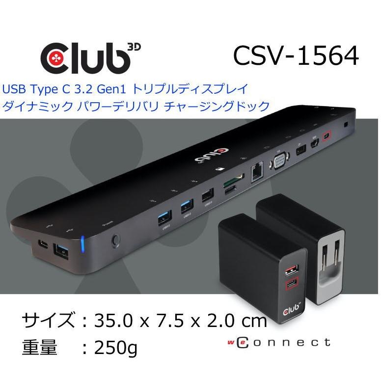 Csv 1564 Club3d Usb 3 2 Gen1 Type C Hdmi Displayport Vga トリプル ディスプレイ 100w ダイナミック チャージング ドッキングステーション Bearhouse