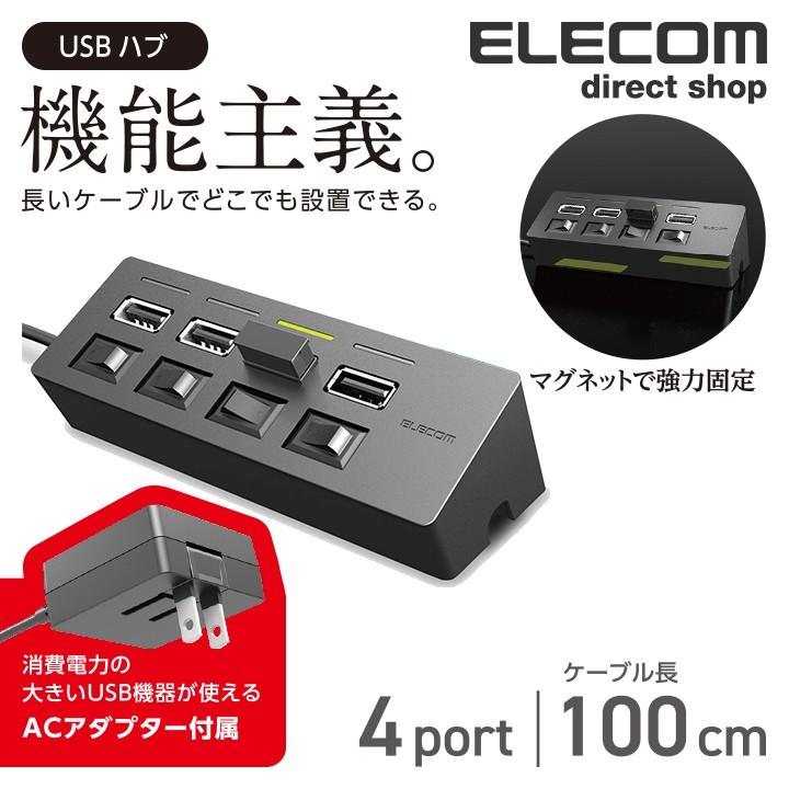 エレコム Usbハブ スイッチ付 Acアダプタ付 Usb2 0 4ポート マグネット搭載 個別スイッチ セルフパワー Acアダプター付属 100cm ブラック U2h Tzs428sbk エレコムダイレクトショップ 通販 Paypayモール