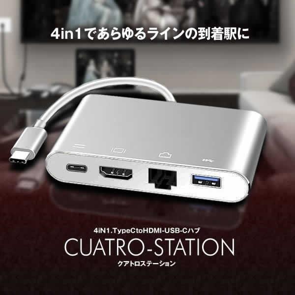 クアトロステーション Usb C ハブ 4in1 Type C To Hdmi Lan Usb3 0 映像変換 アダプタ Cuatstation F0525 1a Com Shot 通販 Yahoo ショッピング