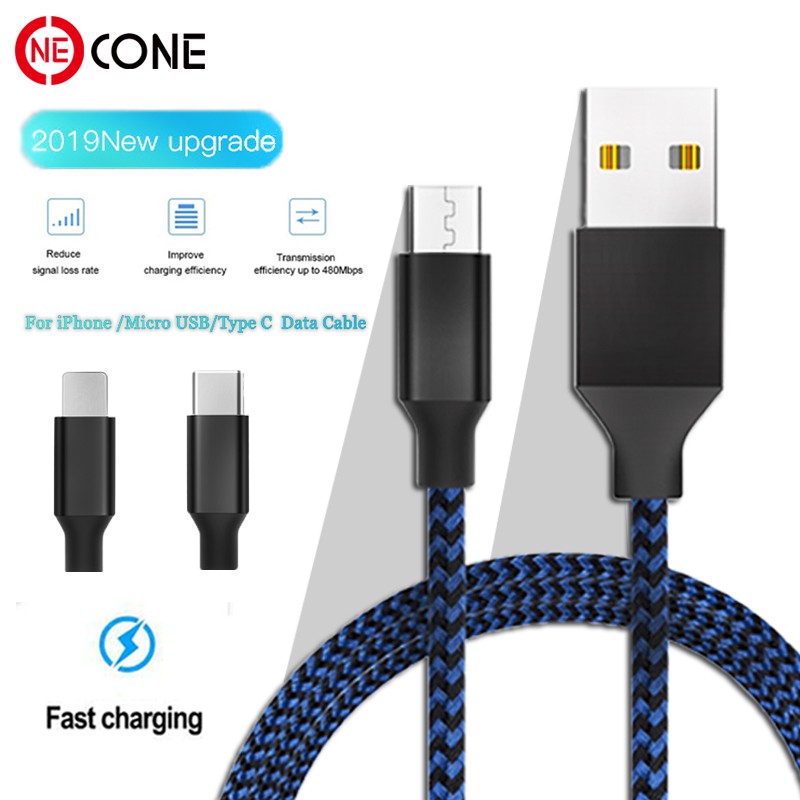 Type C Iphone Micro Usb Fast Charging Cable 1m 2m 3m Data Sync Usb Cable Shopee Philippines